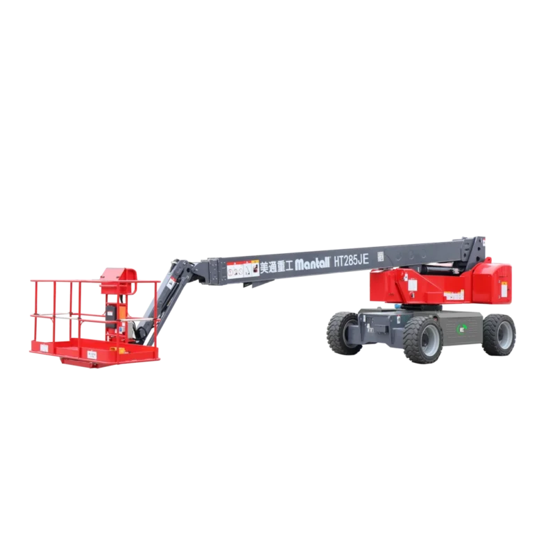 Mantallo® L'elevatore a braccio telescopico HT285JE ha un'altezza di lavoro fino a 28,5 metri con un braccio e un raggio di lavoro orizzontale di 21,6 metri. La piattaforma girevole a 180 gradi ha una capacità massima di sollevamento di 300 kg. La rotazione a 360 gradi della piattaforma girevole offre flessibilità per le applicazioni in cantieri difficili. L'HT285JE è alimentato da un motore diesel con 4 ruote motrici e ha una gradazione di 45%. L'elevatore a braccio telescopico HT285JE è dotato di una modalità di velocità di trasmissione variabile per adattarsi a vari terreni accidentati.